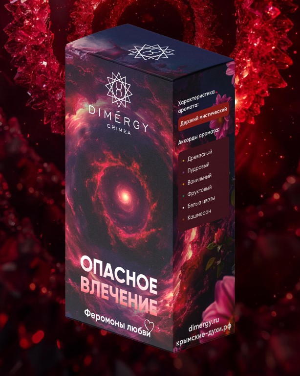 Аромат «Опасное влечение» — пробудит вашу тайную власть. Феромоны разжигают желание, а пленяющий аккорд сандала и пачули окутывает магией соблазна.