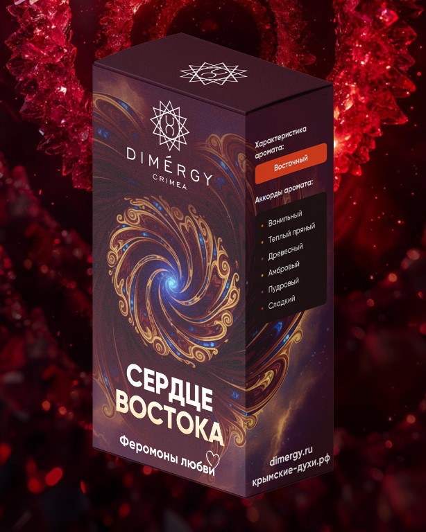 Аромат «Сердце Востока» — ваш волшебный амулет любви. Феромоны дарят притягательную силу, а изысканное благоухание окутывает тайной восточной сказки.